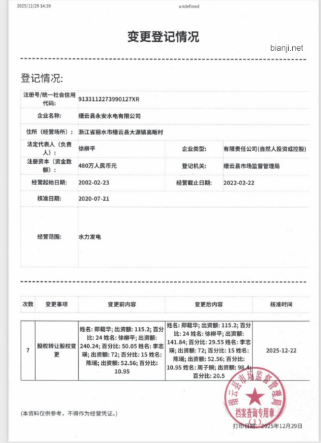 根据当事人提交的司法材料,争议股权主要包括两部分:一是原登记在案外人李向阳名下、后转让给周子婉(时任缙云县水电局领导李某之妻)的15%股权;二是登记在王令仪名下(时任缙云县发改委领导王某之女)的2.5%股权。举报人陈韵秋指控,上述股权实为李某、郭某忠、江某强、王某等人利用职权向徐柳平索要的"干股",未实际出资,涉嫌经济犯罪。