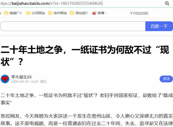 各位网友,今天我想为大家讲述一个发生在贵州山区、令人揪心又深感无力的真实故事。这不是电视剧,而是一位普通农妇在过去二十年间,失去、追寻却又在法律程序中屡屡碰壁的血泪现实。它关乎一纸国家颁发的《土地承包经营权证》到底有多少分量,也关乎我们每个人心中最基本的“公平”二字。